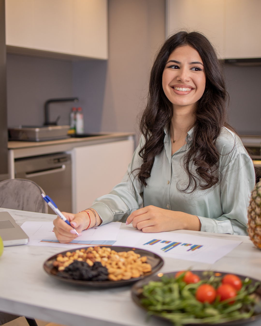Start by reflecting on what makes your practice unique. Are you a holistic nutritionist who prioritizes mindfulness and natural approaches? This should be reflected in serene settings with soft, earthy colors. Or do you specialize in sports nutrition, bringing a dynamic and energetic approach to your practice? In that case, vibrant and bold backdrops paired with active, engaging poses can convey your energy. Align your choice of props, colors, and settings with this vision to make the visuals cohesive and impactful.
