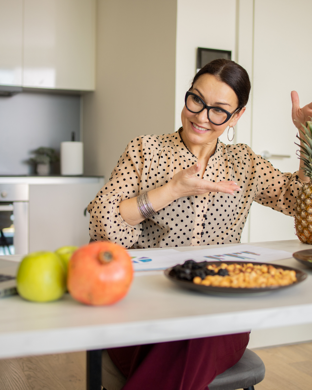 Pro tip : Don’t overlook the importance of props that can add depth and relatability to your images. Items like fresh fruits, vegetables, recipe books, cooking tools, and even a grocery basket can make your photos more engaging and true to your practice. These props not only reflect your expertise but also make your content visually compelling and relatable to clients.