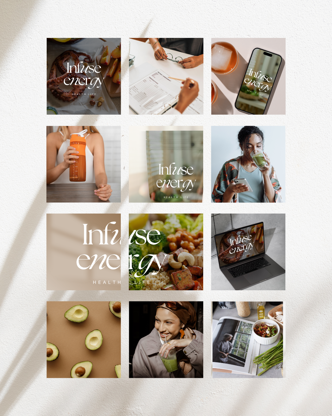 Leverage color psychology to reinforce your brand message. Greens evoke health and balance, perfect for holistic nutrition. Orange conveys energy and enthusiasm, great for brands centered on active lifestyles. Include visual elements that align with your niche—like leaves for plant-based coaching or abstract waves for holistic practices.